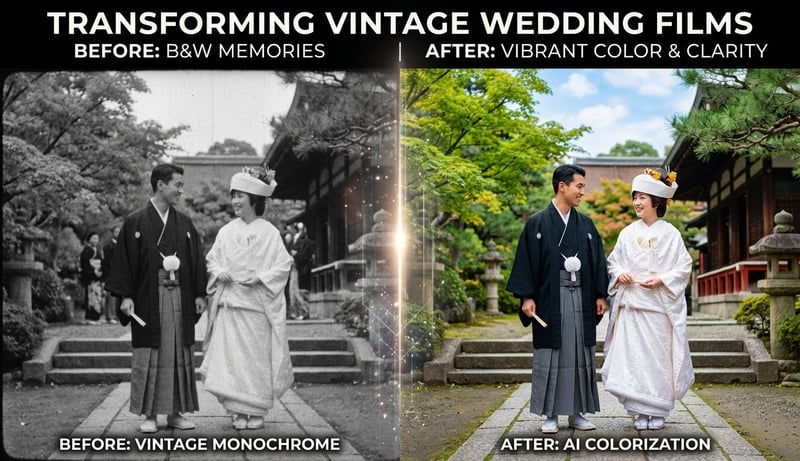 家族の古い白黒映像や結婚式のビデオは、カラー化することで「過去の記録」から「今も感じられる思い出」へと生まれ変わります。