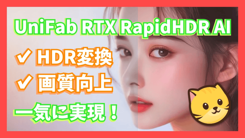 「HDR変換は難しそう…」「パソコンの設定が面倒そう…」と思っていませんか?UniFab RTX RapidHDR AIは、そんな不安を吹き飛ばす次世代ツール!NVIDIA RTXのAI性能をフル活用し、動画のHDR画質変換とアップスケーリング、色域拡張から輝度調整を一括処理。複雑なRTX HDR設定を手動で調整する必要はなく、クリック一つで最適な結果に。UniFabで、お気に入りの映画、配信動画、思い出の映像を、よりリアルで鮮やかな画質のHDRにアップグレードしましょう。