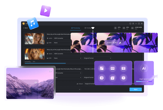 1,000以上のフォーマットをサポートし、ビデオをシームレスに変換、圧縮、編集できます。これらのツールは、最高品質の結果を維持しながら、共有からプロフェッショナルな編集まで、あらゆる用途にビデオを最適化されることを保証します。